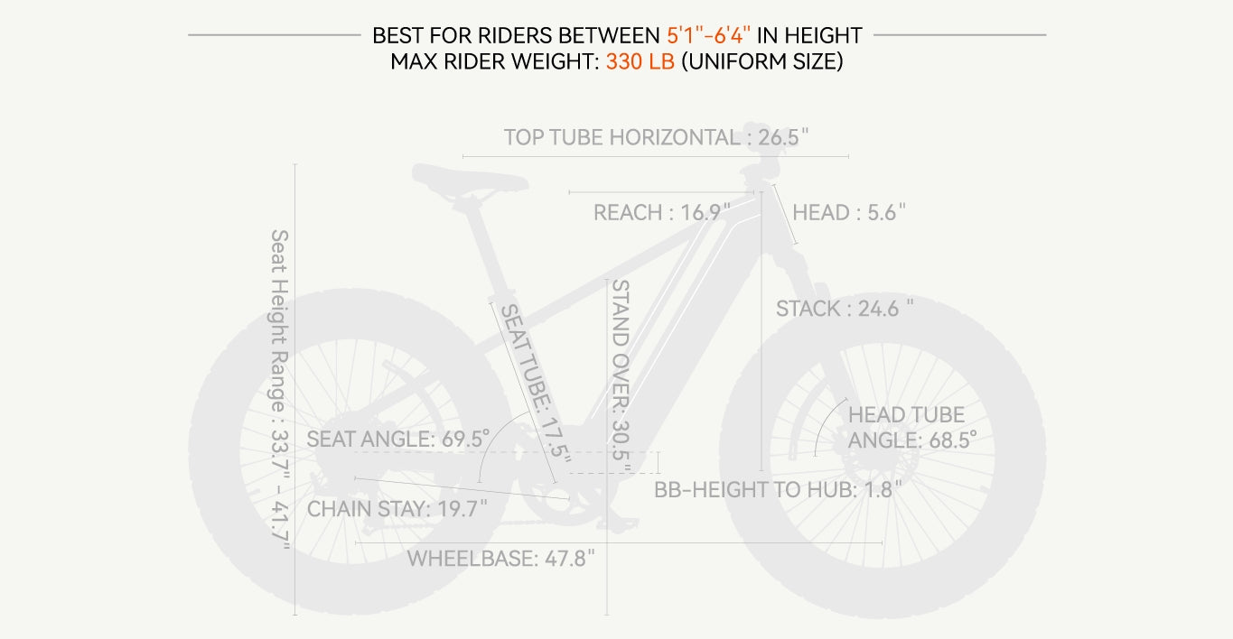 Ride through any surface with the CST 26" * 4.0" puncture-proof tires and suspension. Rain or snow, fear not. The bike is IPX5 waterproof (some parts IPX7 waterproof).